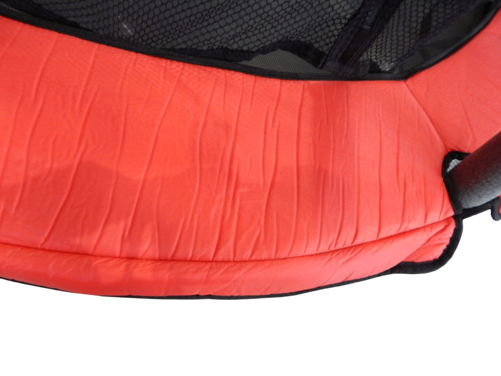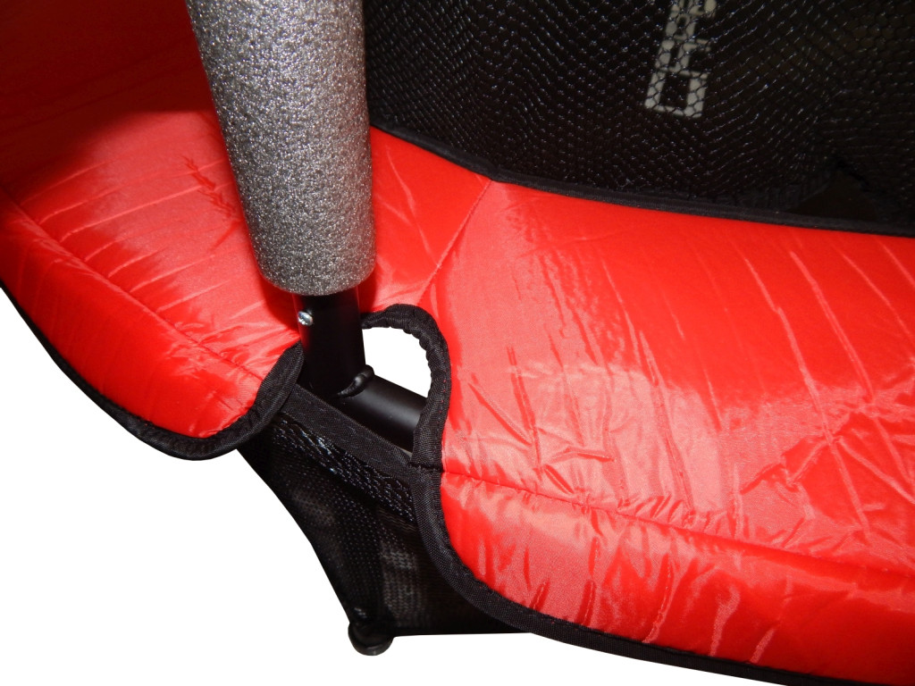 dječji trampolin površine posute prašinom. opterećenje površine trampolina je 55 kg, a opruge su zamijenjene elastičnim užadima, što najmanjoj djeci osigurava najveću sigurnost.Elastično uže ne može nanijeti povredu maloj djeci, ne mogu prstima među spirale opruge. Postoji zaštitna suknja za sprečavanje ulaženja , puzanja male djece ispod trampolina ili da bilo što dospije ispod trampolina, što je veoma bitno za sigurnost pri skakanju. Prikrivač-suknja je vijcima pričvršćena uz noge trampolina, ne može se pomeriti. Ulaz je kružnog oblika, s dva zatvarača koji se mogu potpuno otvoriti i dijete lako penje , ulazi na trampolin.