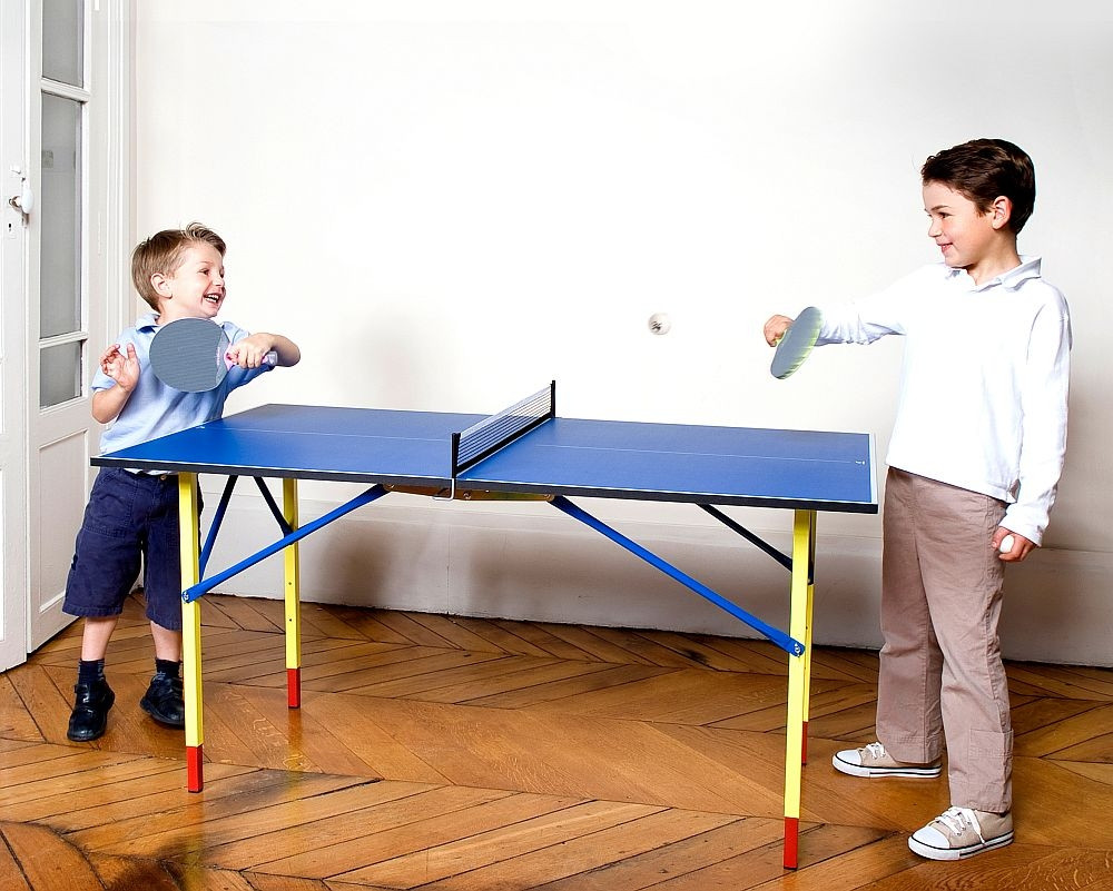 Cornilleau Hobby Mini stol podesiv za visinu djece : sa podesivim nogama pogodan mlađim igračima (podesivost do 76cm, 68cm, 60cm) prema dobi djece. Stol za stolni tenis isti kao i stol za odrasle u unutarnjem prostoru, odgovarajuće kvalitete i debljine koja osigurava dobar odskok loptice, pruža pravi doživljaj . Izvedba stola je masivna, stabilna, 21kg težine. Preporučujemo baby pingpong paket, koji sadrži rekete, loptice u raznim bojama, CD s instrukcijama. Sklopiv, lako se skladišti i montira. Površina igranja 137x76cm, debljina 16mm
