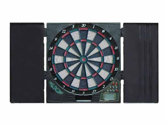 Dizajn ormara, sklopiva krila, elegantna srebrna dekoracija koja je vidljiva izvana kada je ploča zatvorena. Napajanje: 220V AC 5V DC adapter (uključen). Veliki LCD zaslon. 29 igara u 90 varijacija. Zvučni efekti, upute na engleskom, kontrola glasnoće u 8 razina. Stanje mirovanja: Nakon 3 minute uporabe aktivira se funkcija Ušteda energije. Izbor igre protiv računala, lagana-srednja-napredna -profesionalna razina.Pohrana neispravnog bacanja. U setu se nalazi 6 pikada i 40 vrhova za strelice. Dvostruki bulls eye, crvena i zelena meta, nisu odvojeni za postizanje većeg broja pogodaka. Veličina (zatvorena): 41x45x4 cm
