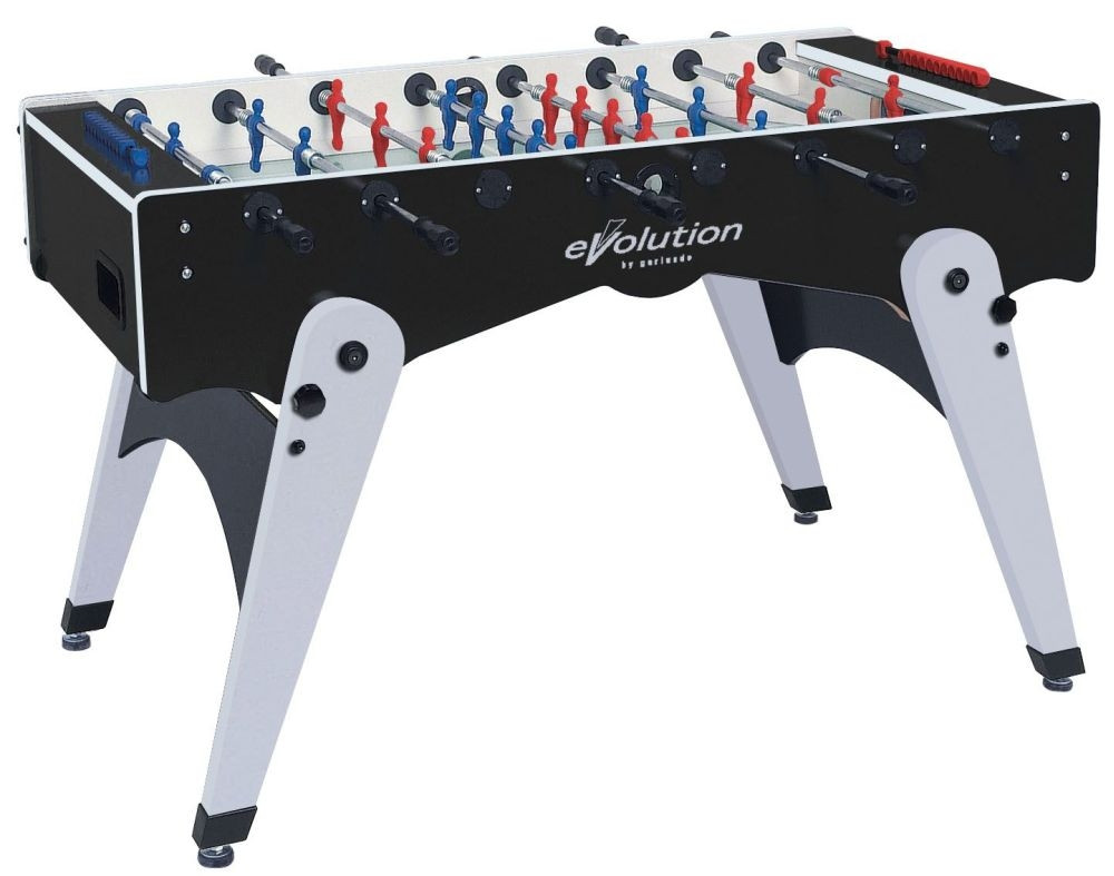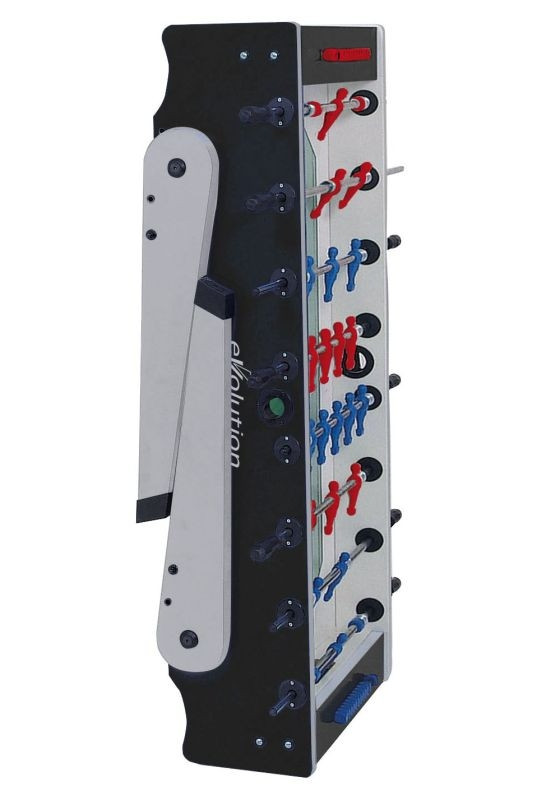 Garlando Foldy Stol za stolni nogomet s sklopivim nogama, transportnim kotačima: stolni nogometni stol, koji nam se može činiti kao potpuno odvojen model od marke. Stol ima inovativan, moderan dizajn. Noge stola mogu se sklopiti ispod i lako transportirati s ugrađenim transportnim valjcima. Tu je i alternativa visokokvalitetnim stolovima za stolni nogomet za kupce koji se bore s prostorom.Stol je izrađen od MDF-a debljine 25 mm, vanjski sloj je presvučen melaminom, crne boje. Ako se nakon upotrebe noge stola preklope ispod, možemo ih valjati u vodoravnom položaju, čak i ispod kreveta na ugrađenim valjcima. Noge stola su MDF debljine 40 mm,obložene melaminom. Oprema za stolni nogomet može se naručiti na zahtjev s teleskopskim šipkama.Igrači su bijelo-plavi. Igralište je prekriveno pjeskarenom staklenom pločom, na kojem se lopta kreće s boljim svojstvima nego na laminatnom podu. Šipke stola se pomiču u kutiji s kugličnim ležajem, što čini igru bržom bez da se igračev zglob optereti.Oprema za stolni nogomet isporučuje se s 10kom standardnih lopti.Garlando stolni nogomet se isporučuje sa golmanom 180/360 stupnjeva okreta, stol GarlandoFoldy podliježe trogodišnjem jamstvu. Proizvod je u skladu s EU EN-71-1, EN-71-2 i EN-71-3 sigurnosnim propisima. Snažan okvir, izrađen od 2,5 cm debelog metala, s melaminskom površinom i plavom bojom. Noge stola su elegantne i iskrivljene prema vani,debljine 4 cm i debelog MDF melaminskog pokrivača debljine 2,5 cm.Noge stola mogu se preklopiti ispod plohe za pravilno skladištenje. Na bočnim stranama stola, gumeni odbojnici su montirani na četiri točke, što omogućuje da se stol postavi bez oštećenja laka u onim slučajevima gdje se noge stola preklapaju ispod. Na istoj strani odbojnika nalaze se mali kotačići na kojima se stol može umetnuti ispod kreveta. Šipka je valjani čelik s visokom otpornošću na savijanje i promjerom od 16 mm. Spojevi su obrađeni površinom kroma otpornom na koroziju. Kvalitetu upotrijebljenih materijala ukazuje i debljina šipkastog materijala, koji je 2,2 mm, što jamči dugotrajnu stabilnost oblika. Šipka se može koristiti dugo vremena bez savijanja, a štap je također dostupan u teleskopskoj verziji za korisnike koji su svjesni sigurnosti. Prijelazne šipkea: Spojnica strši iz ravnine stola, u slučaju potpuno izvučenog položaja. To je rasprostranjena konvencija u mnogim dijelovima svijeta. Sigurnosna oprema (teleskopska veza): Svaki stol može biti opremljen i teleskopskim šipkama, ako je potrebno, ove šipke imaju iste karakteristike igranja kao i spone. Razlika je samo u funkciji maksimaliziranja. U teleskopskoj vezi, štapić manjeg promjera se pomiče u većem promjeru. Šipke se ne mogu izvući iz ravnine stola. Ovo rješenje se najčešće koristi kada su stolovi u vrtićima, nižim razredima u školi ili manjim u našim domovima. Teleskopska šipka štiti lice i oči djece od ozljeda. Način fiksiranja šipke prema zidu.Korištenje kugličnih ležajeva uvelike ubrzava brzinu igre, dok u isto vrijeme ručni zglob igrača nije izložen povećanom naprezanju. Jednobojne lutke: plastični igrači (mopleni) koji su oblikovani tako da oblikuju stiliziranog čovjeka izravno na štap, nisu u stanju skliznuti, ne mogu se montirati, njihov položaj se drži savršeno stabilno. Boje timova si plavo-bijeloj kombinaciji. Dostupan je i sa rotirajućim vratarima od 360 ° ili sa ne rotirajućim golmano u 180 °. Igralište je izrađeno od pjeskarenog stakla čija površina nije prozirna,bez sjaja. Staklo je debljine 5 mm, očvršćeno u svim slučajevima. Bijelo obojene pruge u potpunosti vraćaju raspoloženje nogometnog igrališta, a lopte se mogu baciti kroz rupu za bacanje lopte. Takve se rupe nalaze na obje strane staze. Lopte se mogu lako ukloniti iz pretinaca iza dvaju vrata.